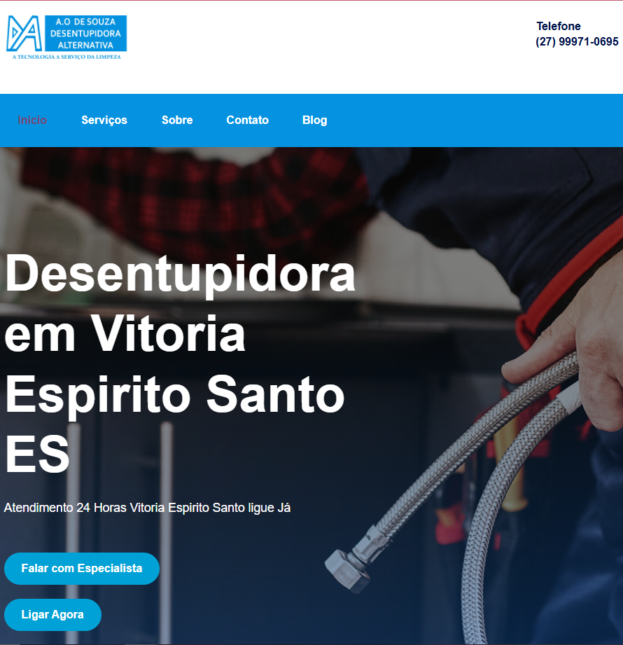 Um site contemporâneo, responsivo e altamente funcional desenvolvido para a Desentupidora Alternativa