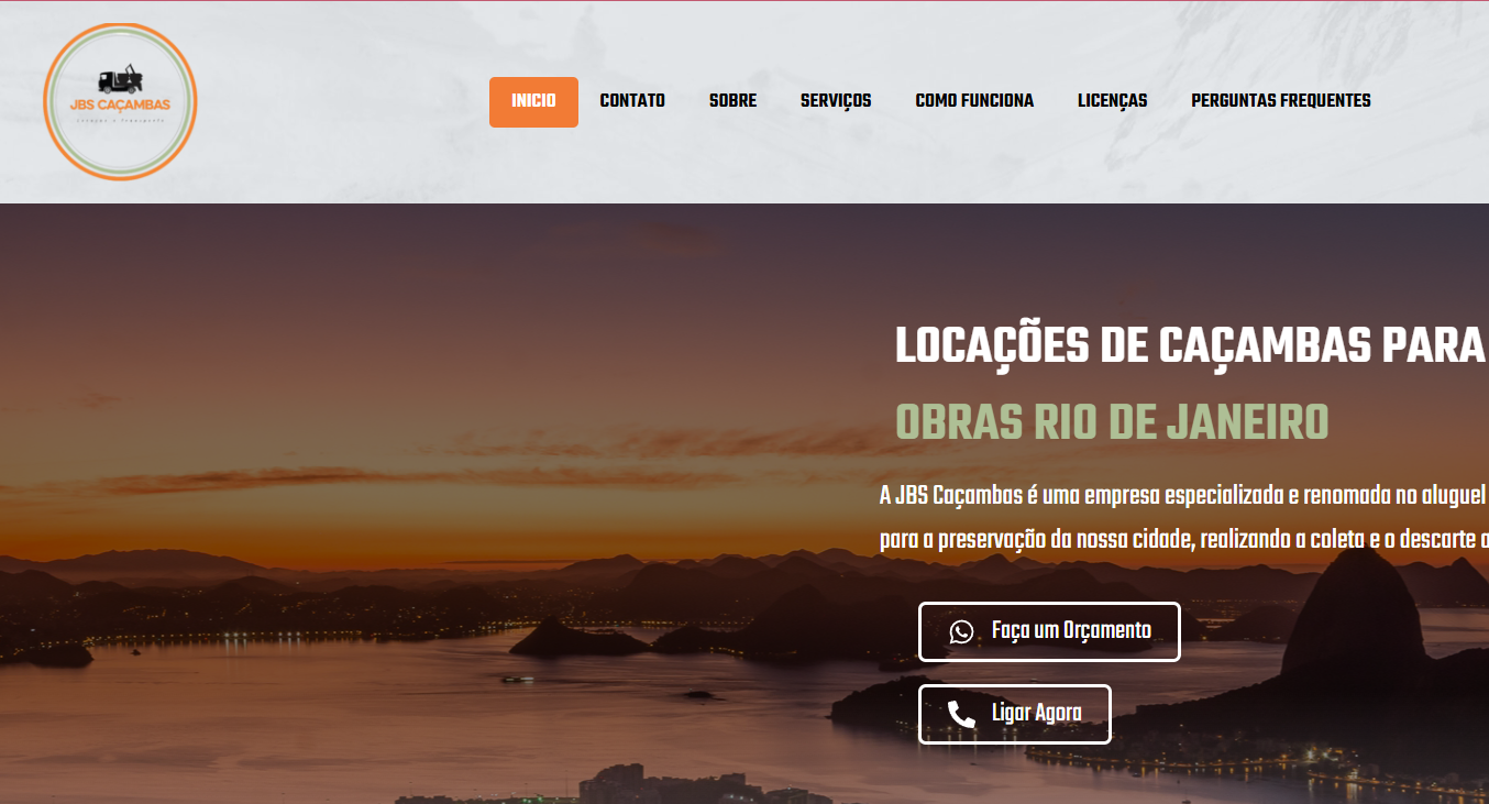 Um site objetivo e eficiente, desenvolvido especialmente para a JBS Caçambas, referência em aluguel de caçambas e retirada de entulho no Rio de Janeiro